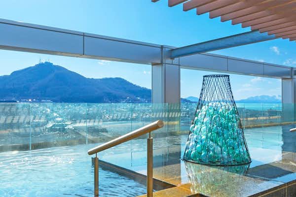 展望台から見える函館山や津軽海峡、横津連峰の山並み、そして特別史跡五稜郭の大地に輝く星形の眺望がご覧いただけます。